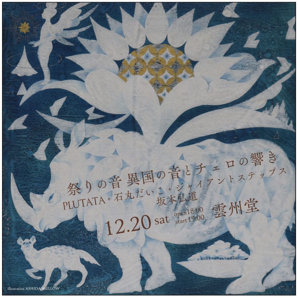 『祭りの音異国の音とチェロの響き』PLUTATA+石丸だいこ+ジャイアントステップス&坂本弘道 12月20日@大阪・雲州堂